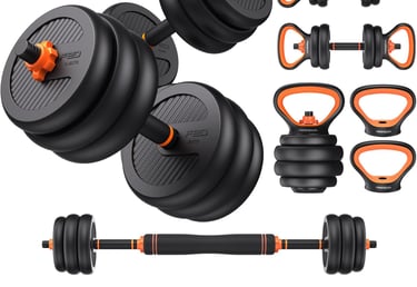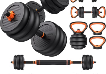 4 in 1 Multifunctional Dumbbell Set With it, you can get a pair of dumbbells also barbells, kettlebells, and push-up stands, which help you do many exercises including bench presses, squats, etc.
