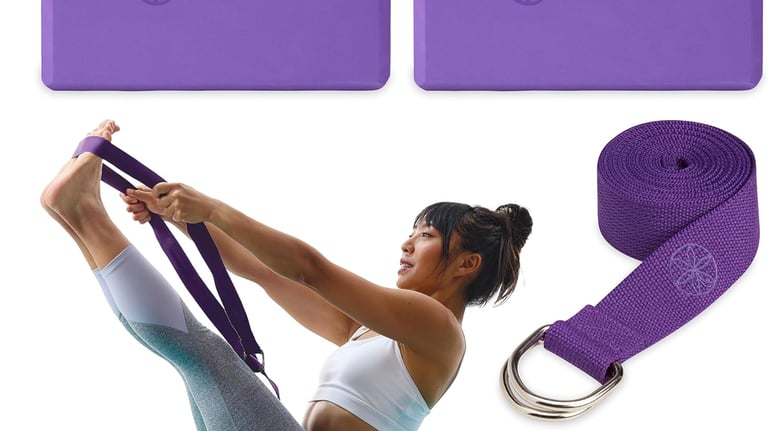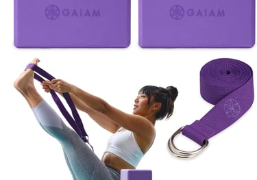 Support and modify poses to suit your level of flexibility with this Yoga Block & Strap Combo from Gaiam. This yoga block and strap set includes a stable lightweight sturdy foam block that has beveled edges for easy gripping and comfort,